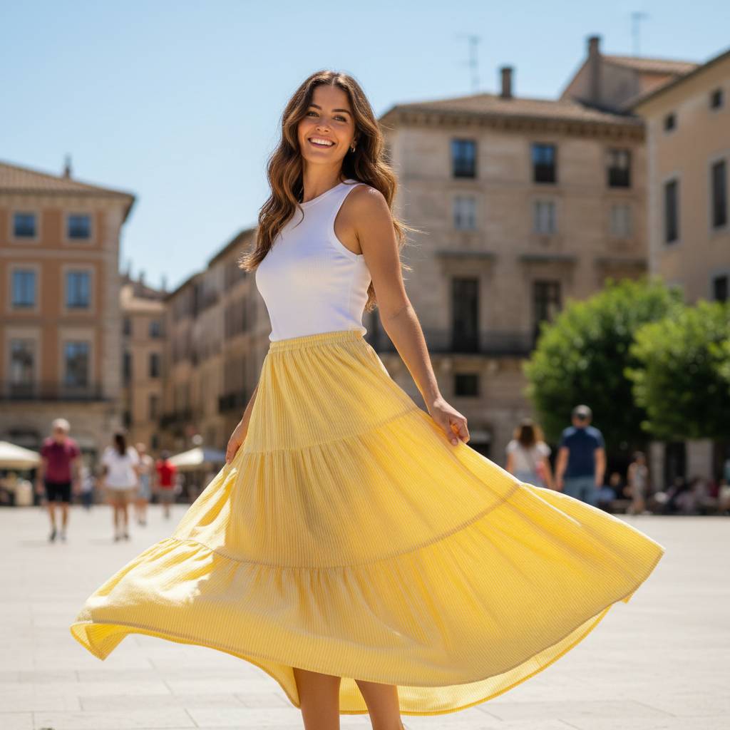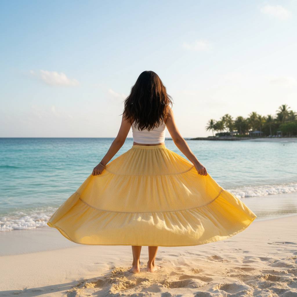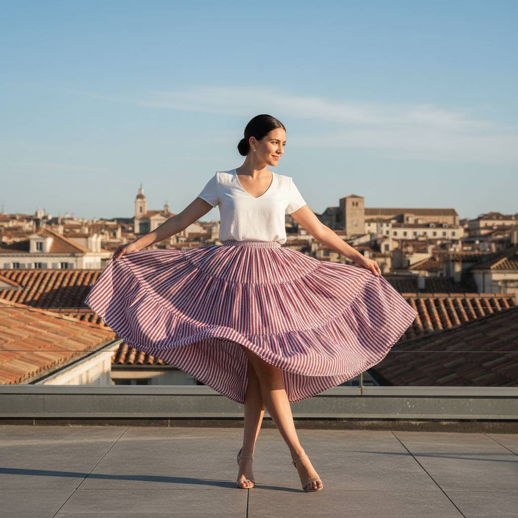Classic Tiered Silhouette: A thoughtful design that offers rhythmic movement and a structured, high-fashion appearance.