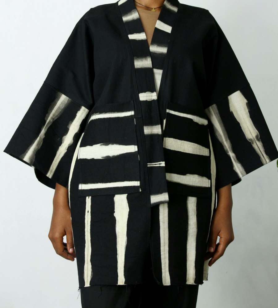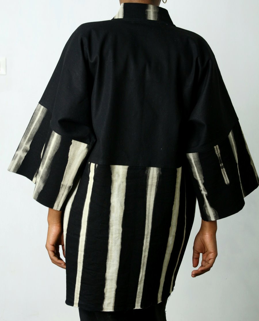 Shop: SARAH™Hand-Bleached Statement Jacket | Sustainable Black Denim Kimono | Artist-Driven African Apparel | Luxury African Streetwear | One-Of-A-kind Black Denim Streetwear | Meaningful Fashion To Wear in 2026 | African Designer Brands