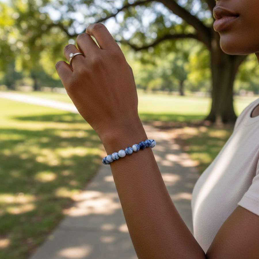 You’ll appreciate the soothing energy and cool weight of the stone against your wrist