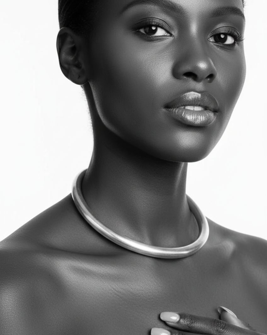 Handcrafted with precision, the Z Lorisa Necklace celebrates African-inspired artistry, creating a bold accessory that is both sophisticated and versatile. Its clean lines and polished surface make it an essential piece for the woman who loves to stand out.