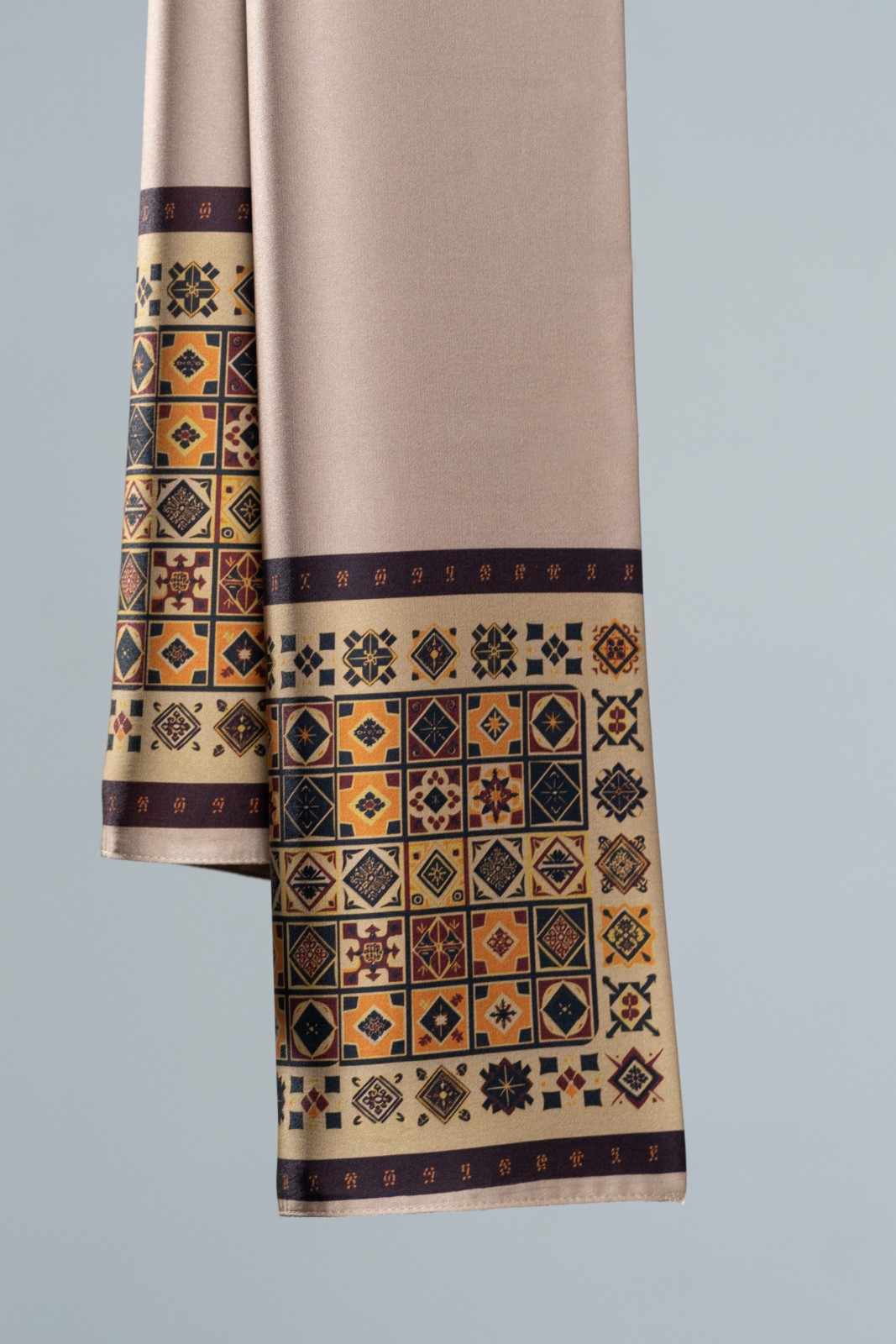 Shop: ZURI DESIGNZemenay Silk Scarf | Scarves for Women | Brandy Heritage Print | Ethiopian Habesha Wrap | Geometric Mosaic Silk Scarf | African Traditional Neckwear | Women's Silk Scarves | Beige Habesha Shawl | Afrikart Fashion