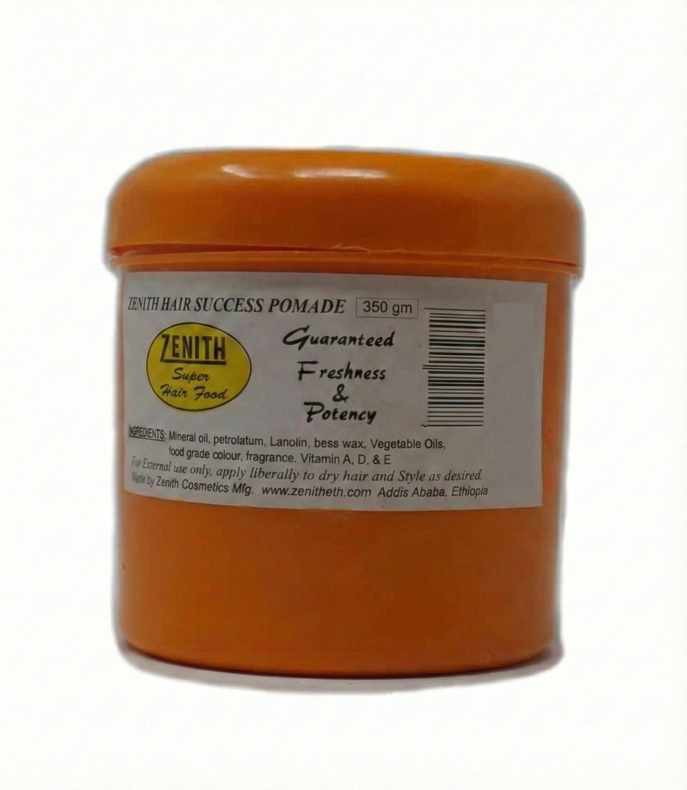 Zenith Hair Success Pomade (Yellow) Zenith Hair Success Pomade is a time-honored haircare essential, produced by the leading personal care company in Ethiopia and the East Africa region. For decades, this "Yellow" pomade has been the go-to solution for families seeking to restore vitality to dull, dry hair.