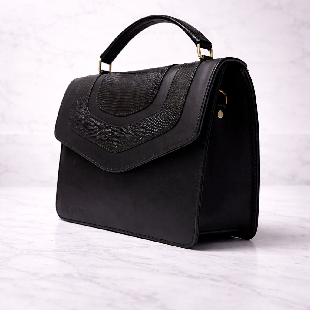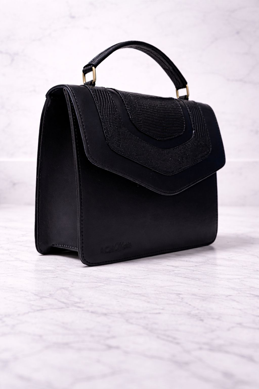 Shop: Achmaria SnAmi Black Leather Handbag | Genuine Sheepskin | Handcrafted in Senegal | Elegant Artisan Bag | Secure Clasp Closure | Luxury Women's Fashion | Versatile Daily Accessory | Premium Dakar Craftsmanship
