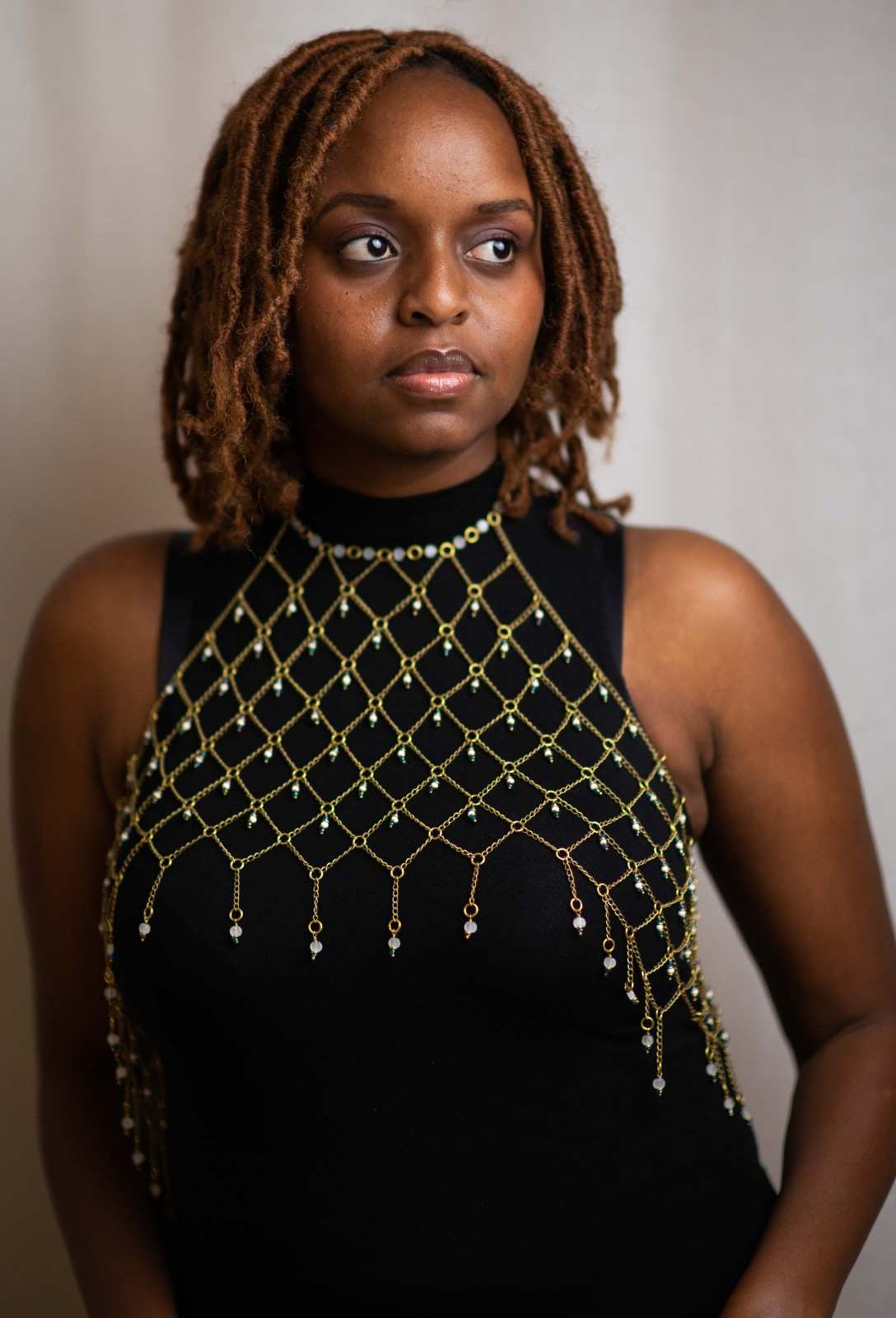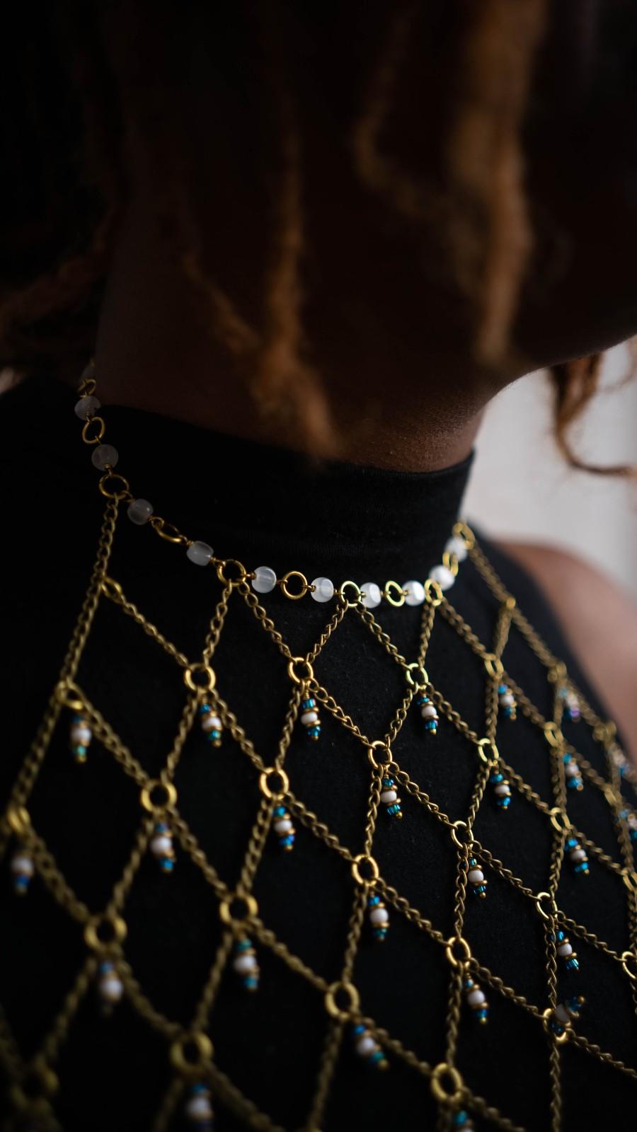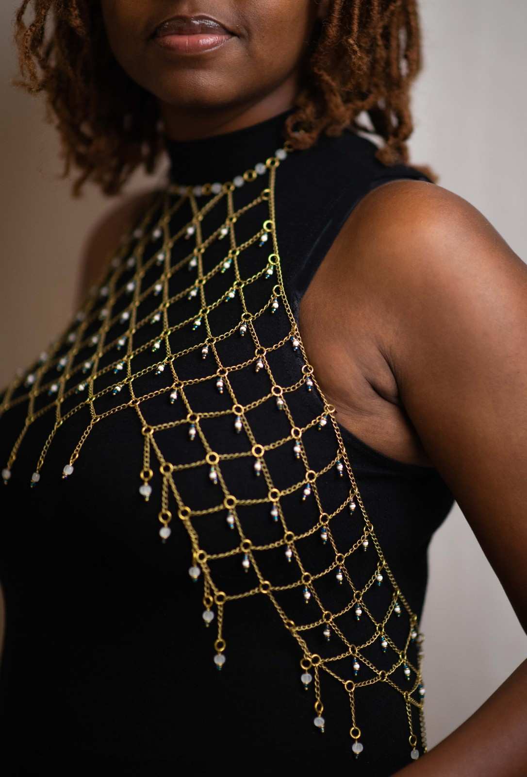 Shop: TIGER TAIL TWISTERArtisan Gold Mesh Body Chain | Brass Beaded Halter Harness | African Tribal Jewelry | Boho Statement Top | Women's Layering Accessory