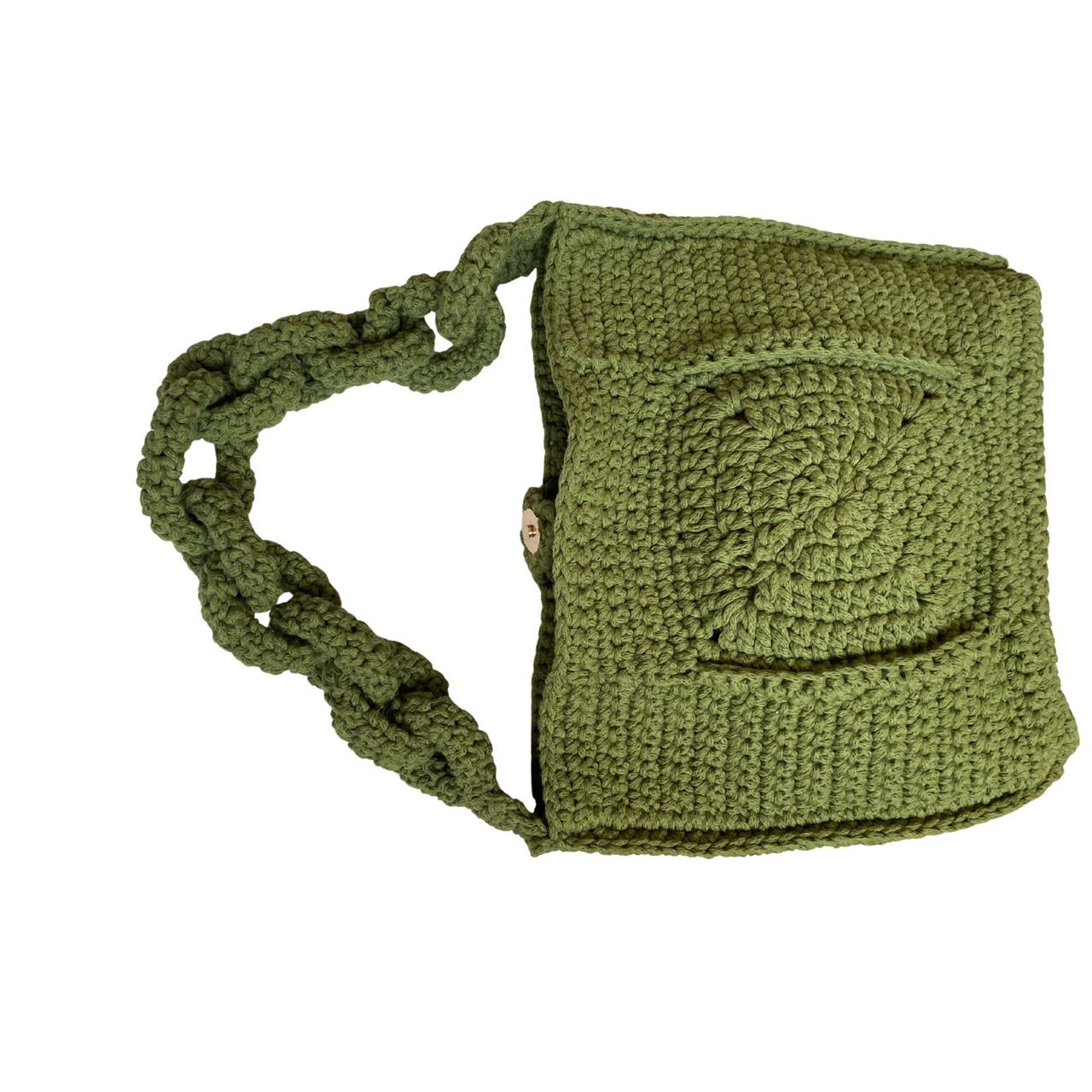 Stylish Handmade Olive Green Macramé Cotton Crochet Shoulder Bag